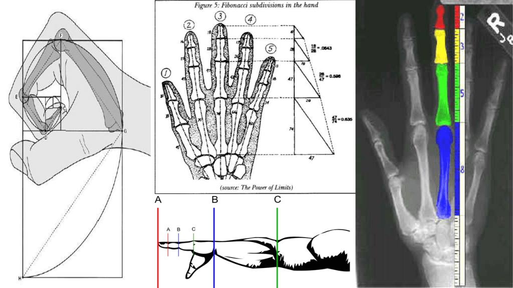 Our hands, for example, are constructed according to the phi ratio. While the palm of our hand is not a swirly spiral itself, the joints in our fingers are placed at distances of the “golden proportion”, the 1:1.618 ratio. If they weren’t arranged according to this mathematical rule, we would find it very difficult to make a fist, or even hold things properly. This geometric proof that we are indeed wonderfully made is magnified throughout our whole body, at different layers of existence.