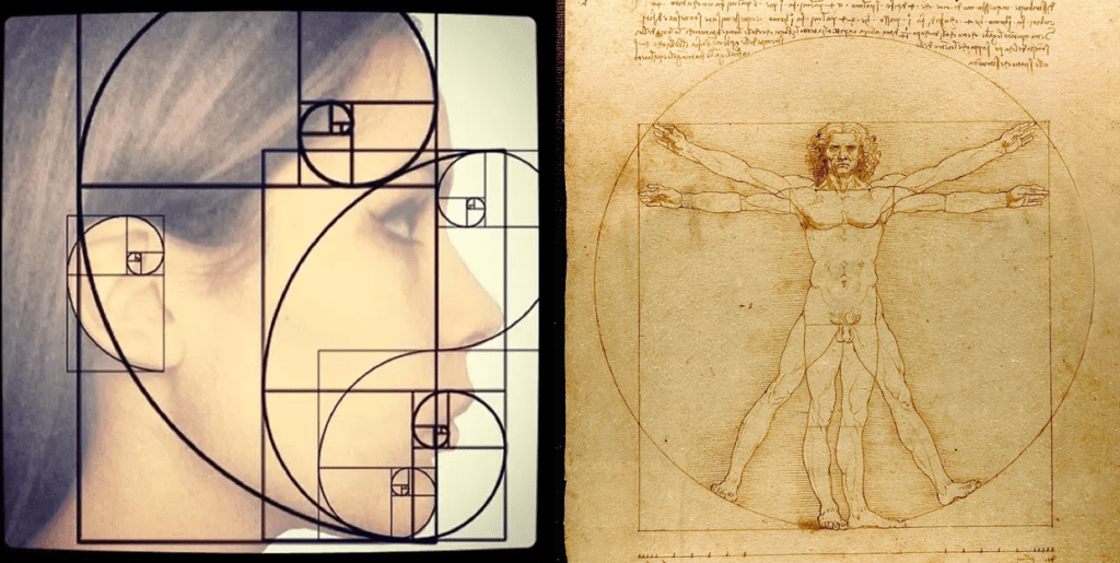 The phi proportions that are visible to the naked eye have been apparent for centuries, if not longer. Da Vinci’s “Vitruvian Man” famously illustrates that the “ideal” proportions of the human body adhere to these measurements. A generally agreed-upon standard of beauty tends to gravitate towards this very same ratio.